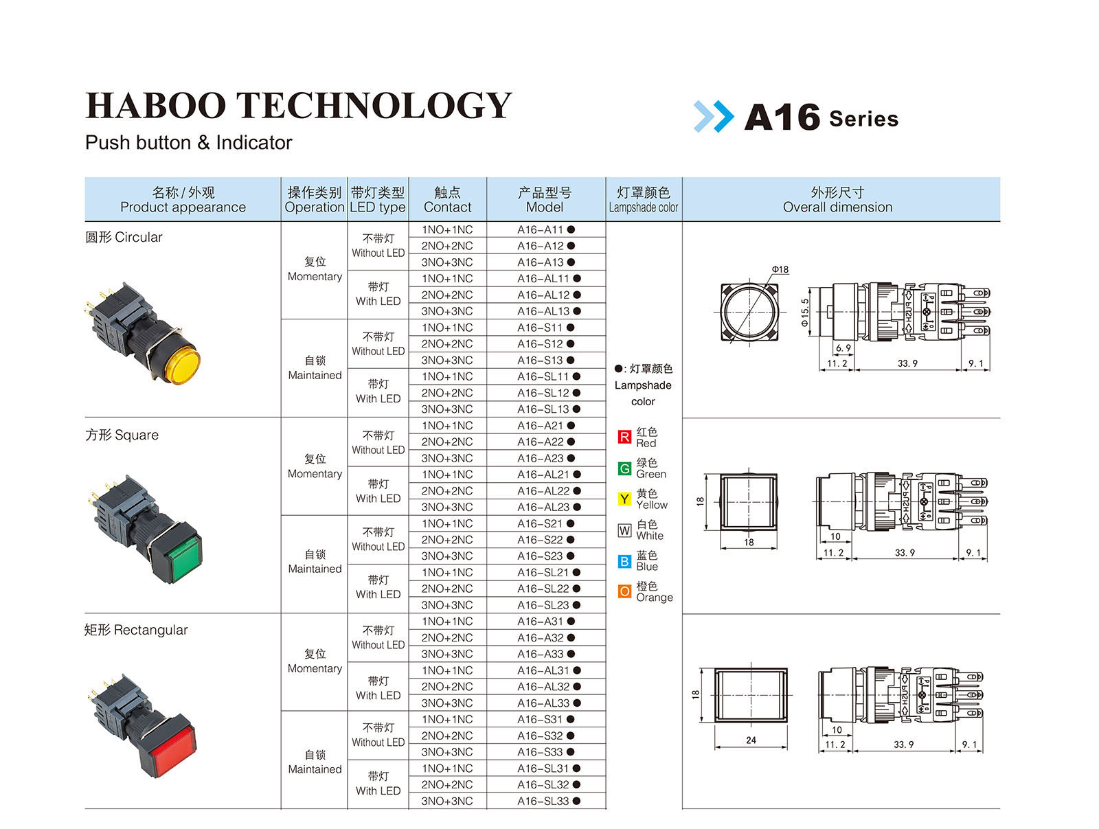 塑料按鈕開關 > 16MM > A16